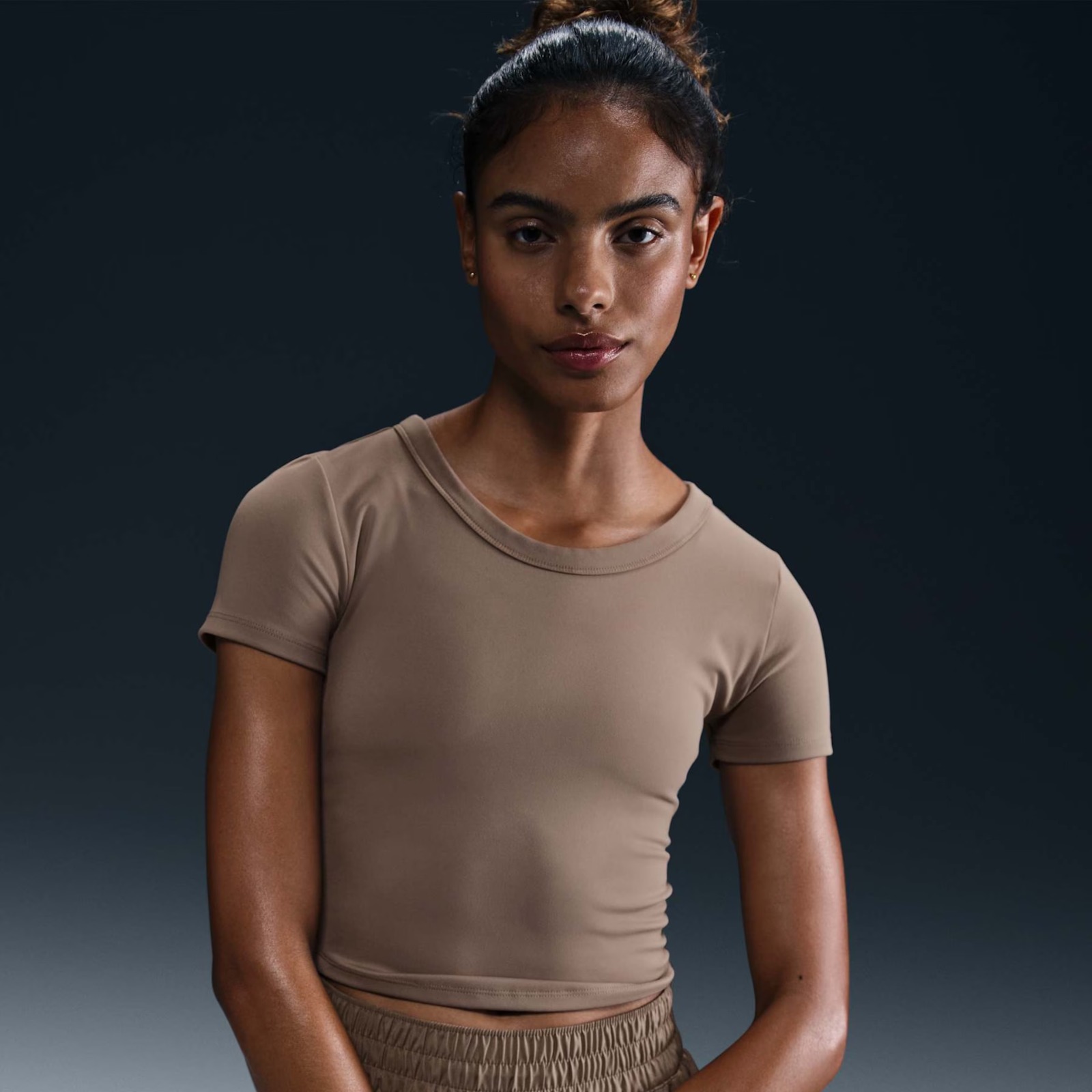 Seja para treinar ou relaxar, essa camiseta Nike One Fitted está pronta para o que você estiver. Tecido macio e de peso médio se estica a cada movimento e seca rapidamente. Levemente cropped e firme, ela está pronta para combinar com suas leggings favoritas de cintura alta para um look da cabeça aos pés no qual você pode se sentir confiante e confortável desde a caminhada matinal até o relaxamento noturno - e em todas as paradas intermediárias.