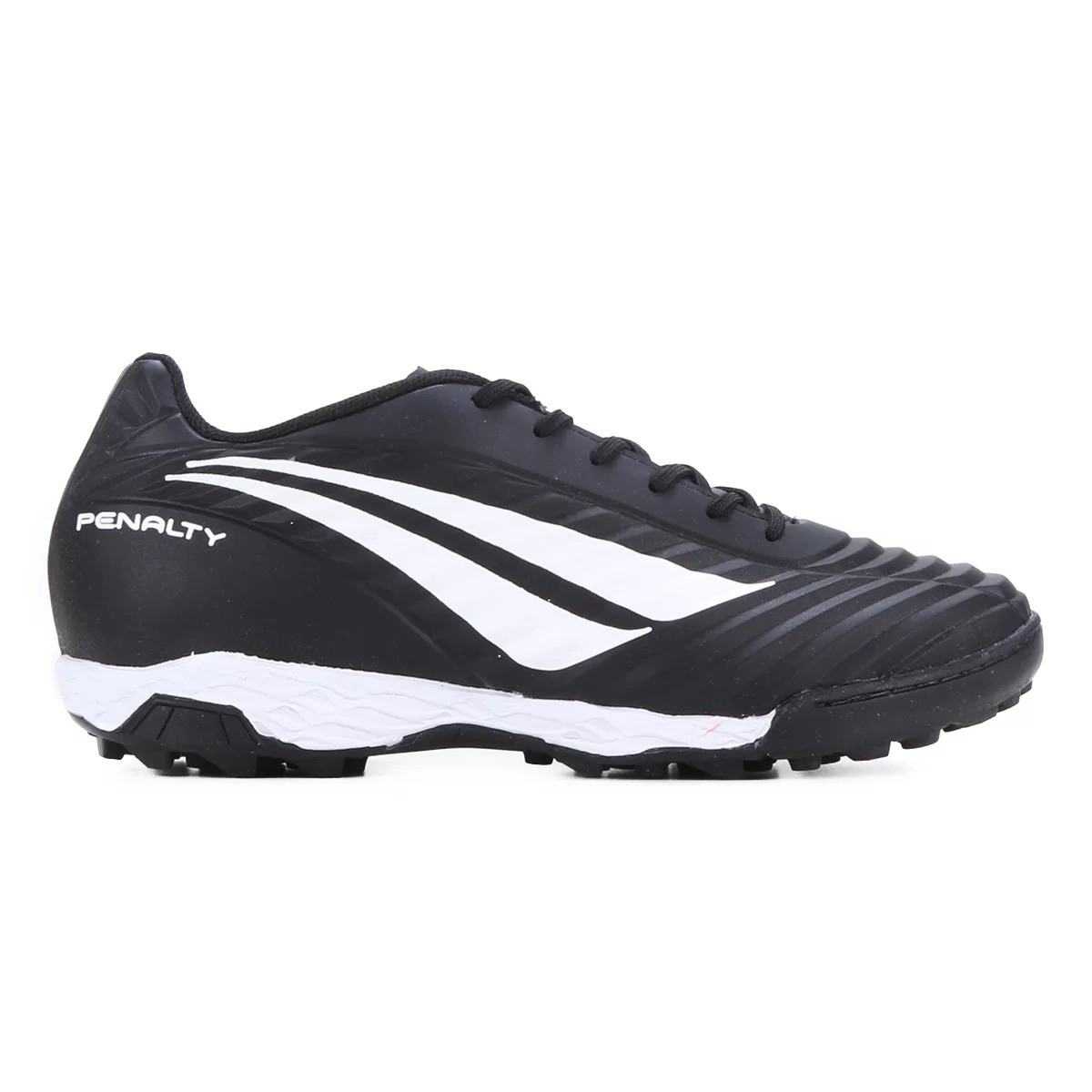 Desempenhe seu melhor futebol jogando com a Chuteira de Society da Penalty. Com design clássico, o modelo traz cabedal produzido em material macio, resistente e levemente texturizado para melhor controle de bola, além de calcanhar acolchoado para suporte e te deixar confiante para arriscar as melhores jogadas. Essa chuteira society possui também uma camada em EVA localizada na entressola que, através da tecnologia Neo Cushion, reduz o impacto durante a movimentação do atleta e ajuda na prevenção de lesões e desgaste no joelho e articulações. Já o solado é emborrachado conta com travas baixas para você brilhar nos campos sintéticos. Complete seu uniforme de jogo com a Chuteira Society Penalty e marque esse golaço.